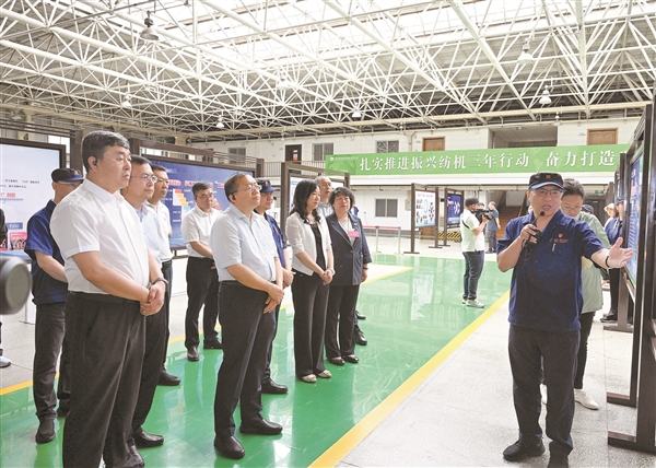 6月5日,全省深化产业工人队伍建设改革现场推进会在晋中市召开,与会人员在经纬智能纺织机械有限公司观摩。