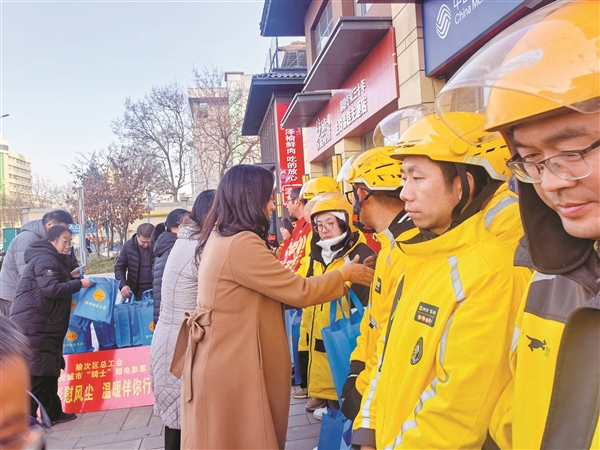 11月27日下午,晋中市总工会走进榆次区网约配送行业工会联合会,开展新就业形态劳动者“暖新礼包”发放慰问活动。