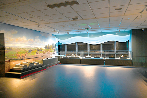 阳泉化石博物馆位于平定县文化中心博物馆区域,以“太行褶皱里的生命密语”为主线,系统展示我市丰富的地质矿产与古生物化石资源。目前,一期展厅已建成,面积685平方米,内设“序厅”“生命初澜”“从海洋到陆地”“末日绿洲”“华夏植物群”等单元。二期展厅建设正在有序推进中,预计明年上半年完工。图为近日拍摄的阳泉化石博物馆一期展厅。晋向华 摄