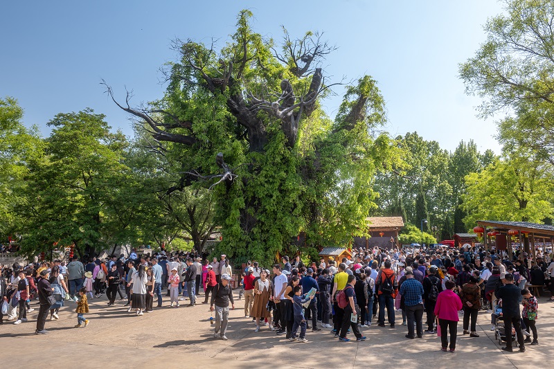游客在洪洞大槐树感受深厚的根祖文化。洪洞大槐树景区供图